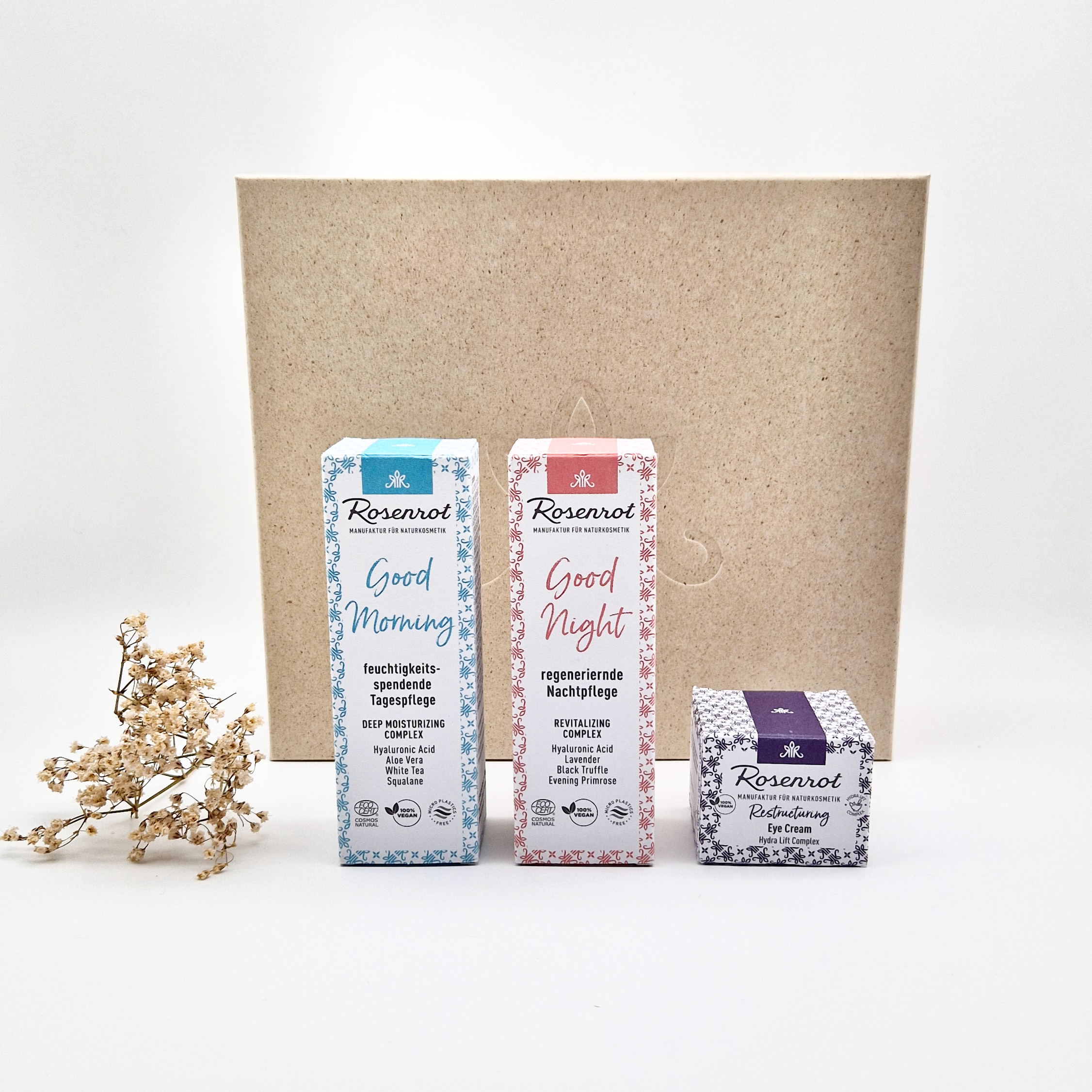 Die Rosenrot Geschenksets bieten die perfekte Möglichkeit, ausgewählte nachhaltige Naturkosmetikprodukte zu erleben. Alle Produkte werden in liebevoller Handarbeit in der Rosenrot Manufaktur nach eigenen Rezepturen gefertigt - frei von Silikonen, Parabenen und Mineralöl.