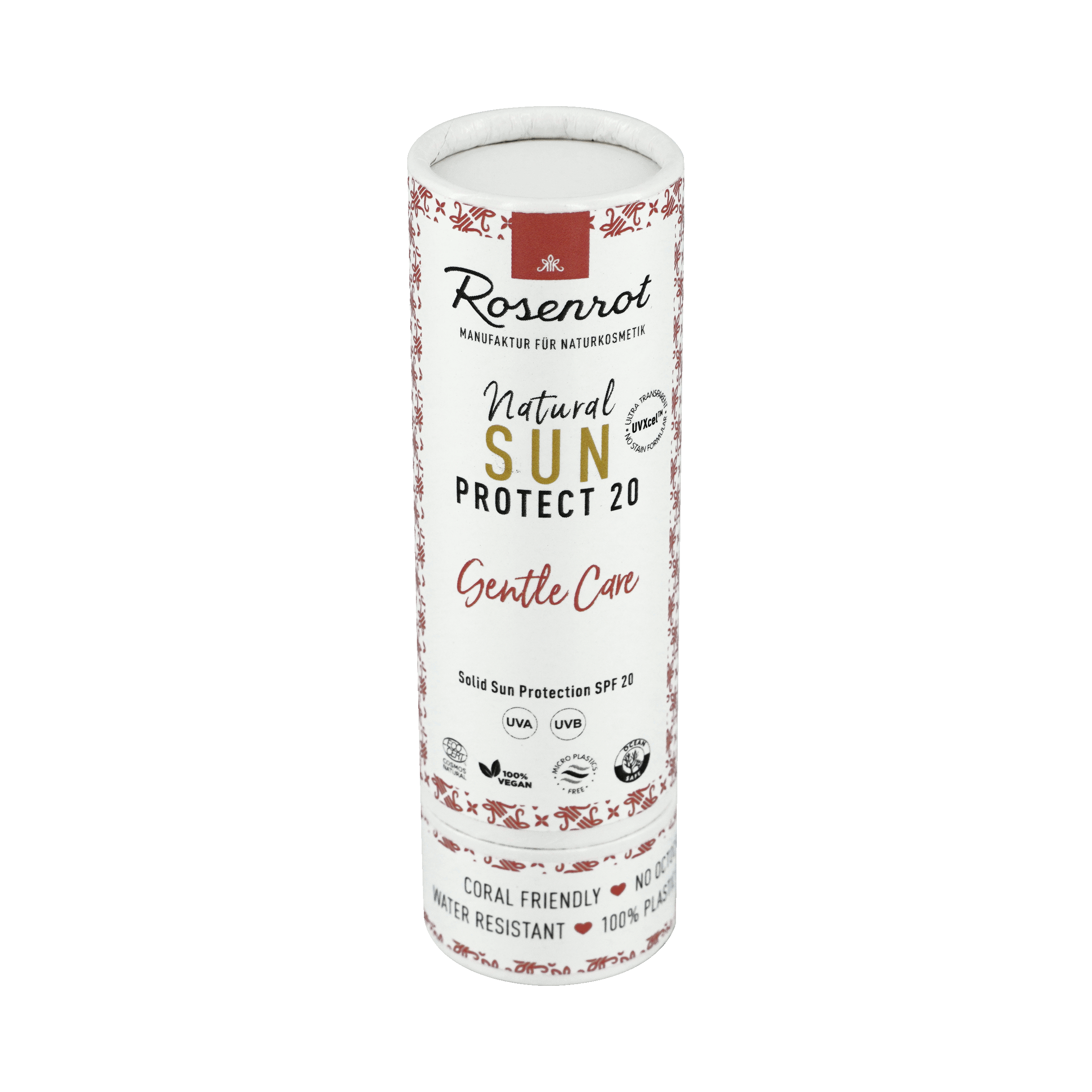 Die neue Generation natürlicher, fester Sonnenpflege von Rosenrot – mit regenerationsfördernden Pflegeölen. Die dermatologisch geprüfte UVXcel™-Formulierung pflegt und schützt effektiv vor schädlicher UV-Strahlung, hinterlässt keine weißen Rückstände und ist wasserfest. Umweltfreundlich durch den Verzicht auf schädliche Chemikalien, Nanopartikel oder Mikroplastik. Durch die nachhaltige Formulierung im praktischen Stick-Format ideal für Reisen geeignet, insbesondere auch für Schnorchel- & Tauchurlaube an sensiblen Meeresriffen.